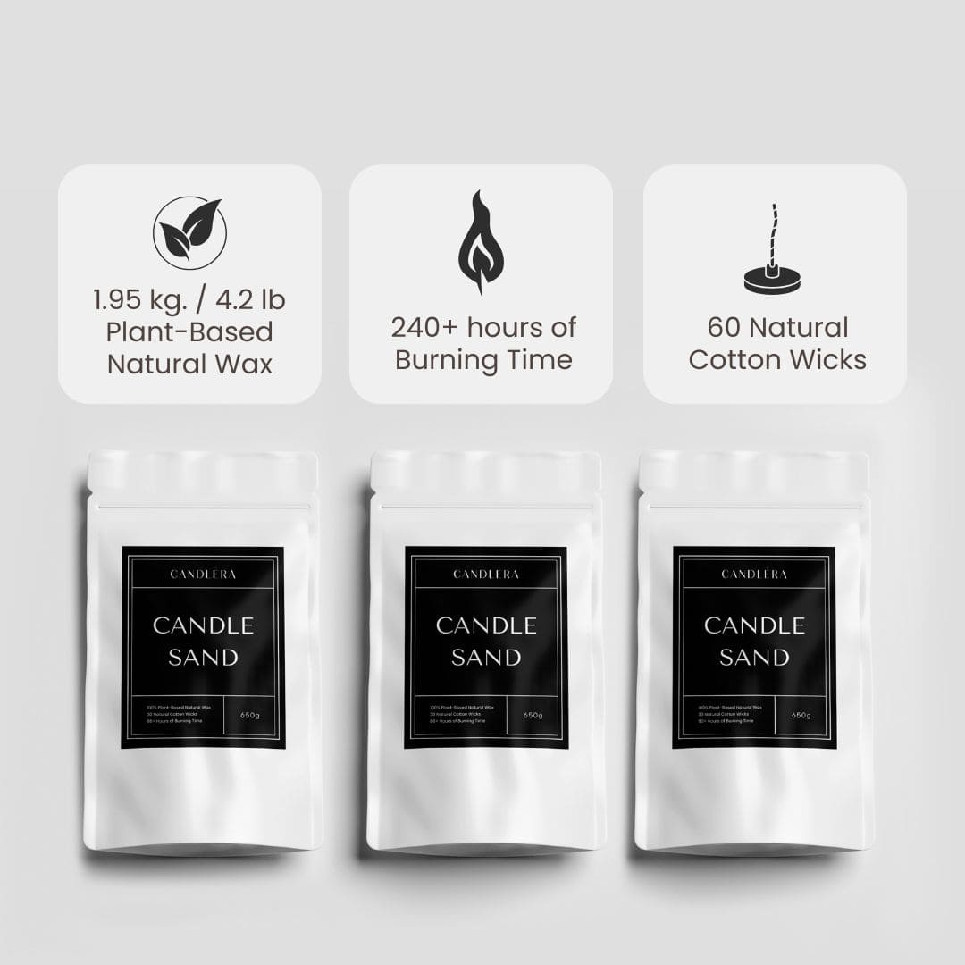 A: Our candle sand is crafted from high-quality, purified plant-based wax, ensuring a clean and eco-friendly burn. We avoid using any parabens, paraffin, or artificial fragrances. The wicks are made from natural cotton, aligning with our commitment to safety and sustainability.