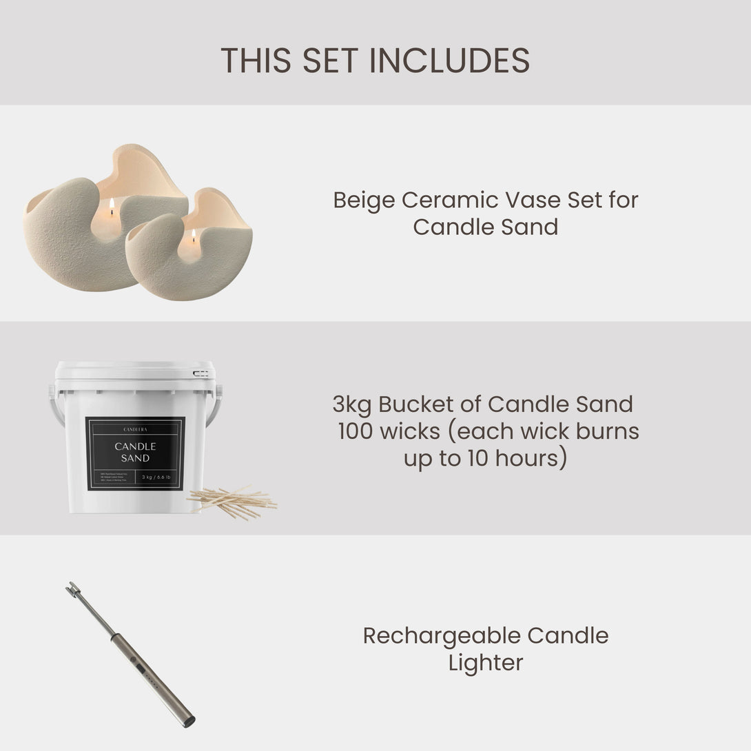 A: Each bundle is unique. The contents are carefully curated and may vary — that’s what makes each one special. You’ll always receive a mix of our most-loved Candle Sand, designer bowls, and accessories.