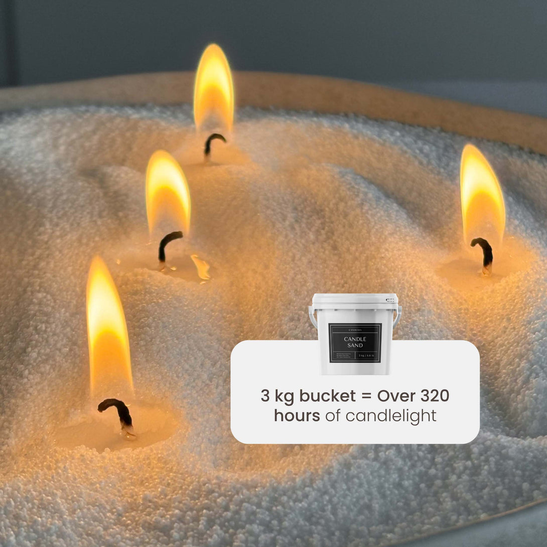 - 3kg Bucket of premium plant-based candle dust for creating pearled candles. Over 360 hours of pure candlelight (varies by use). Effortless renewal every time.