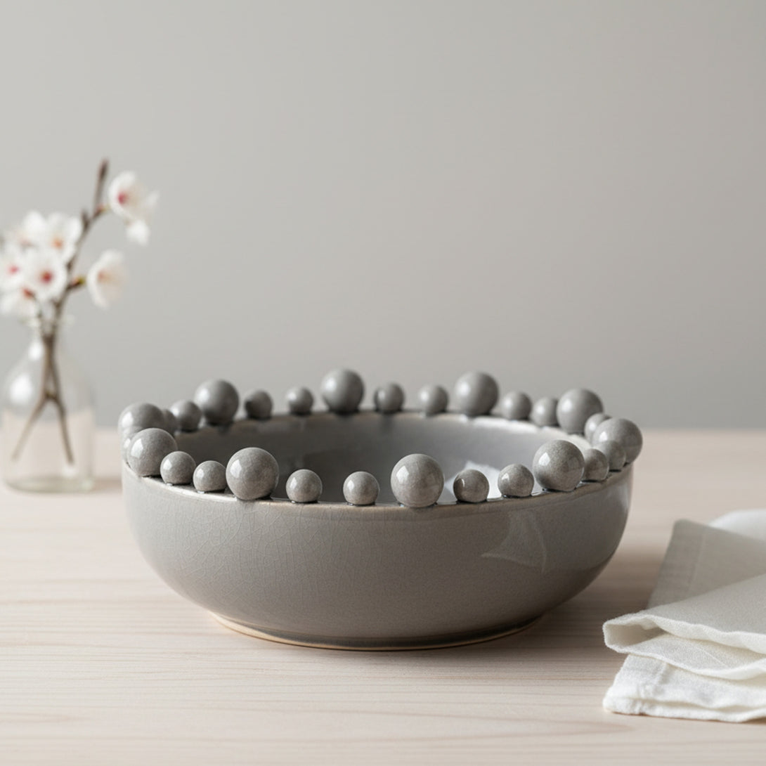 Large Grey Bobble Edge Ceramic Bowl